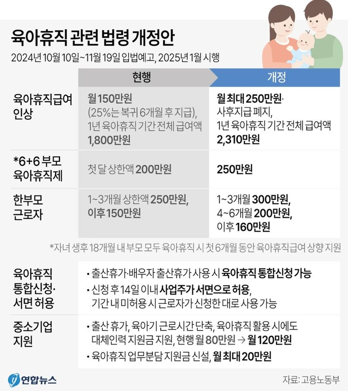 셋째, 부모 각자 최대 1년이었던 육아휴직 기간이 최대 1년 6개월로 연장되었습니다.