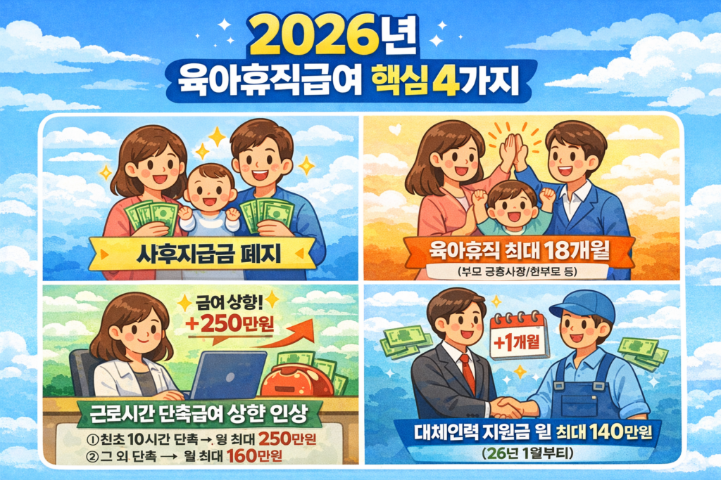 2025년부터 대대적으로 개편된 육아휴직 제도가 2026년에도 그대로 적용되며, 일부 항목은 추가로 확대됩니다. 가장 핵심적인 변화는 네 가지입니다.