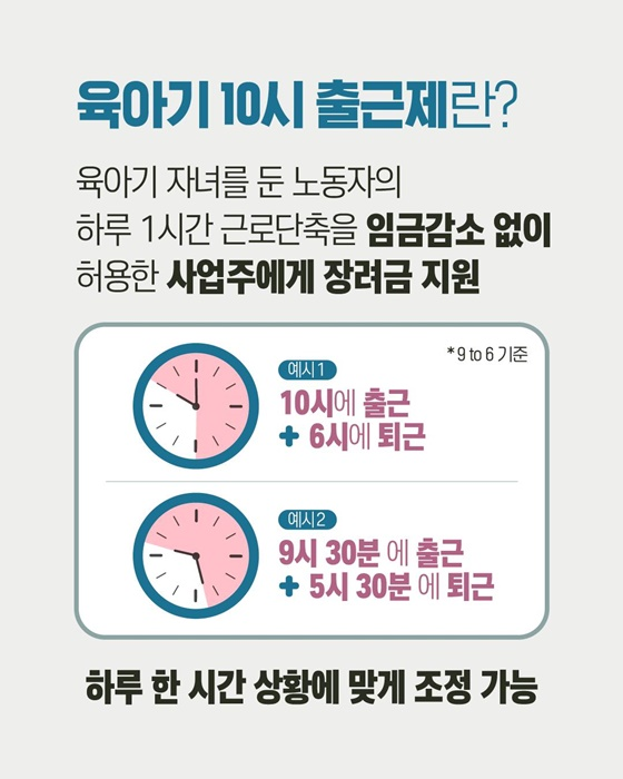 기존 광주 지역에서만 시범 운영하던 ‘육아기 10시 출근제’가 2026년부터 전국으로 확대됩니다.