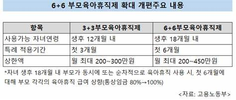 넷째, 6+6 특례 적용 시 자녀 나이 기준에 주의하세요. 6+6 특례는 자녀 생후 18개월 이내에 부모 모두 육아휴직을 사용해야 합니다.